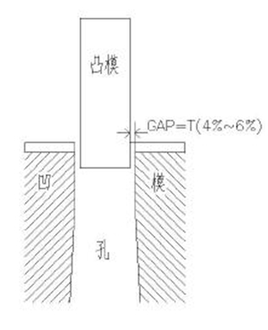 The knife-edge clearance of blanking parts is shown in Figure 3. The unreasonable design clearance of the mold's knife-edge will affect normal production. If the gap is too big, metal dust will be generated. If the gap is too small, the material will be blocked and the mold will be damaged.