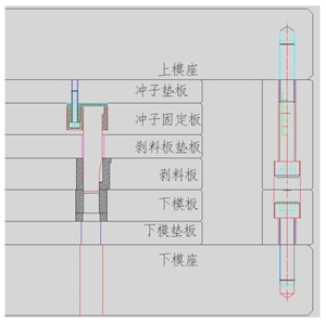 Generally speaking, the length of the punch is equal to the thickness of the punch's fixing plate, stripping plate's backing plate, stripping plate, material and the length of the punch getting into the knife-edge part. If the length of the punch is too great, the material will start punching before the punch is pressed, which will easily cause the punch blade to wear, make the shape of the waste material irregular, materials jam, and the next punching waste stick to the surface of the material belt, resulting in damaging by metal dust. If the length of the punch is too short, the waste is not completely punched below the straight section of the knife-edge, and it is easy to be sucked by the adsorption force between the punch and knife-edge, resulting in metal dust. Figure 5 shows a schematic diagram of the length of the punch extending into the concave mold.